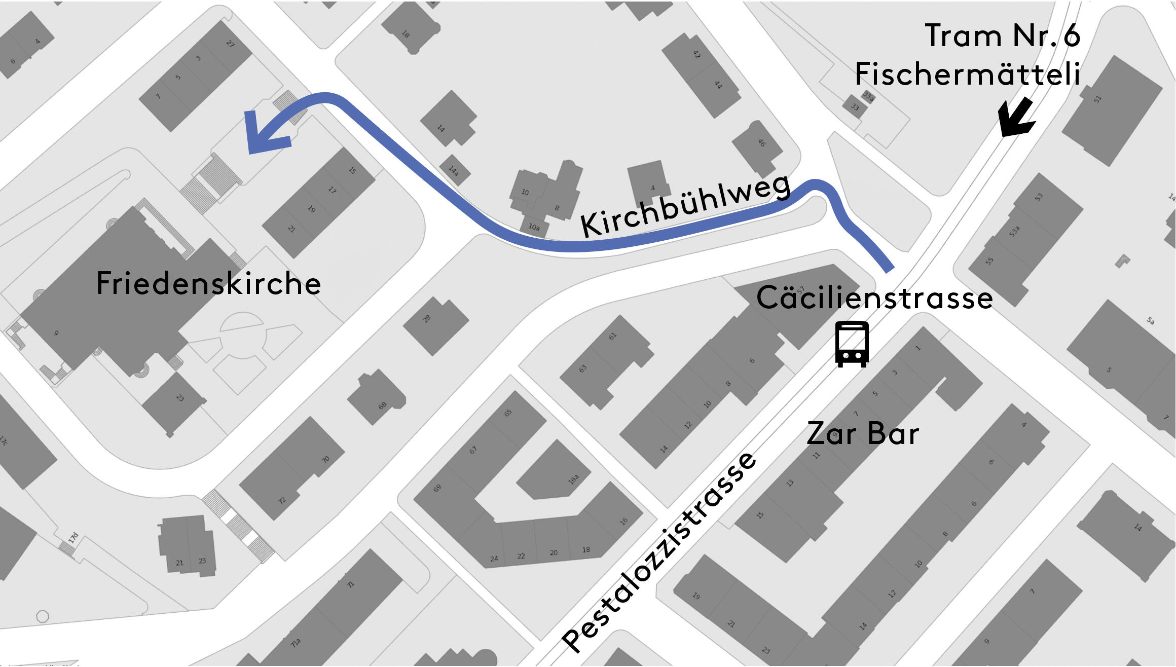 Adresse: Friedensstrasse 9 via Haupteingang oder direkt in die Kirche (Zugang siehe Situationsplan weiter unten)
